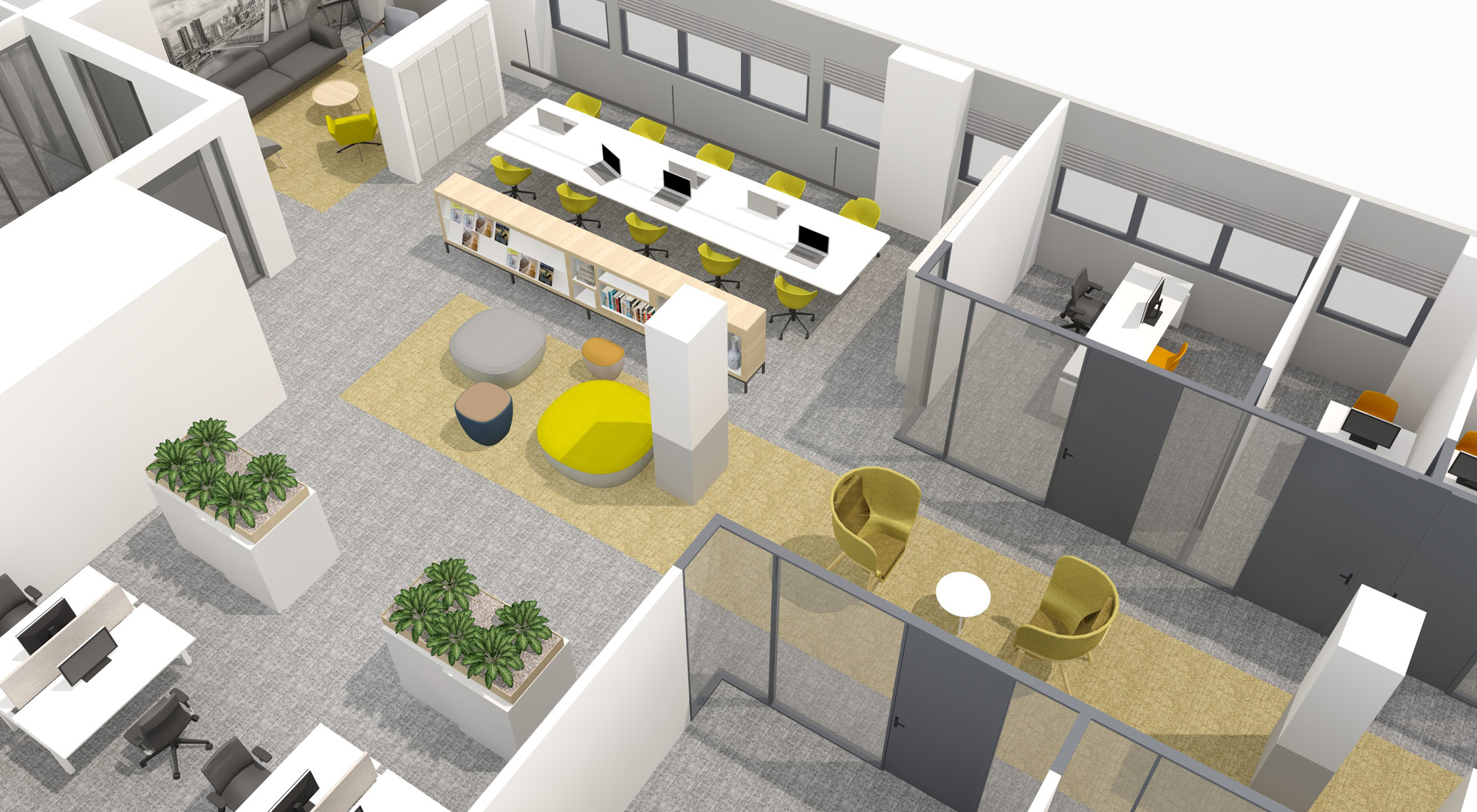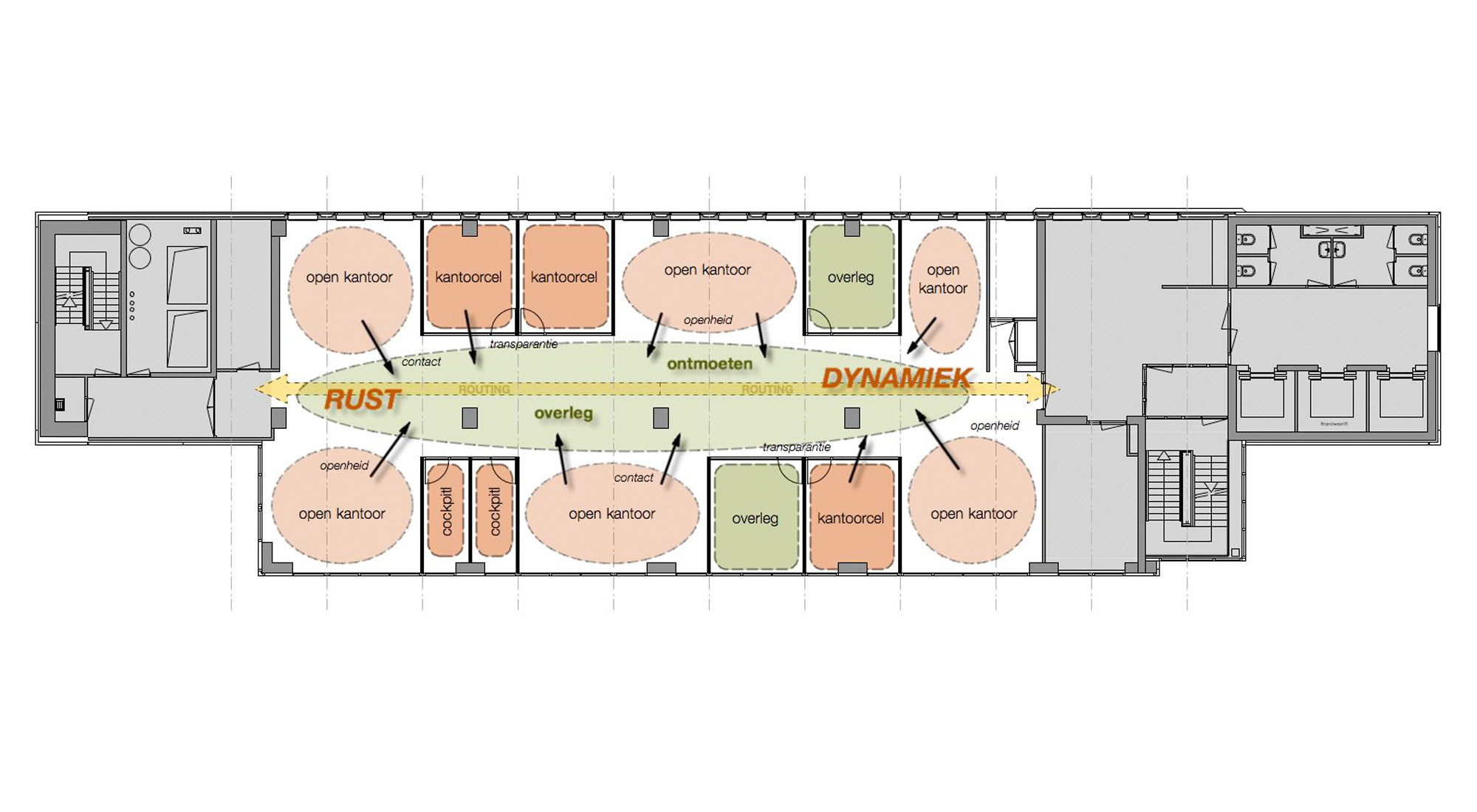 De Hogeschool Rotterdam heeft met de ca. 40.000 studenten een omvangrijke afdeling ‘Diensten’ die het onderwijs faciliteren en verantwoordelijk zijn voor voor het goed functioneren van de gehele organisatie. De medewerken van deze afdeling gaan werken volgens het “Hybride Werken” principe waarvoor een nieuw kantoorconcept ontwikkeld is; een sfeervolle werkomgeving waar ruimte is voor ontmoeten, samenwerken, individueel werken en vergaderen.
